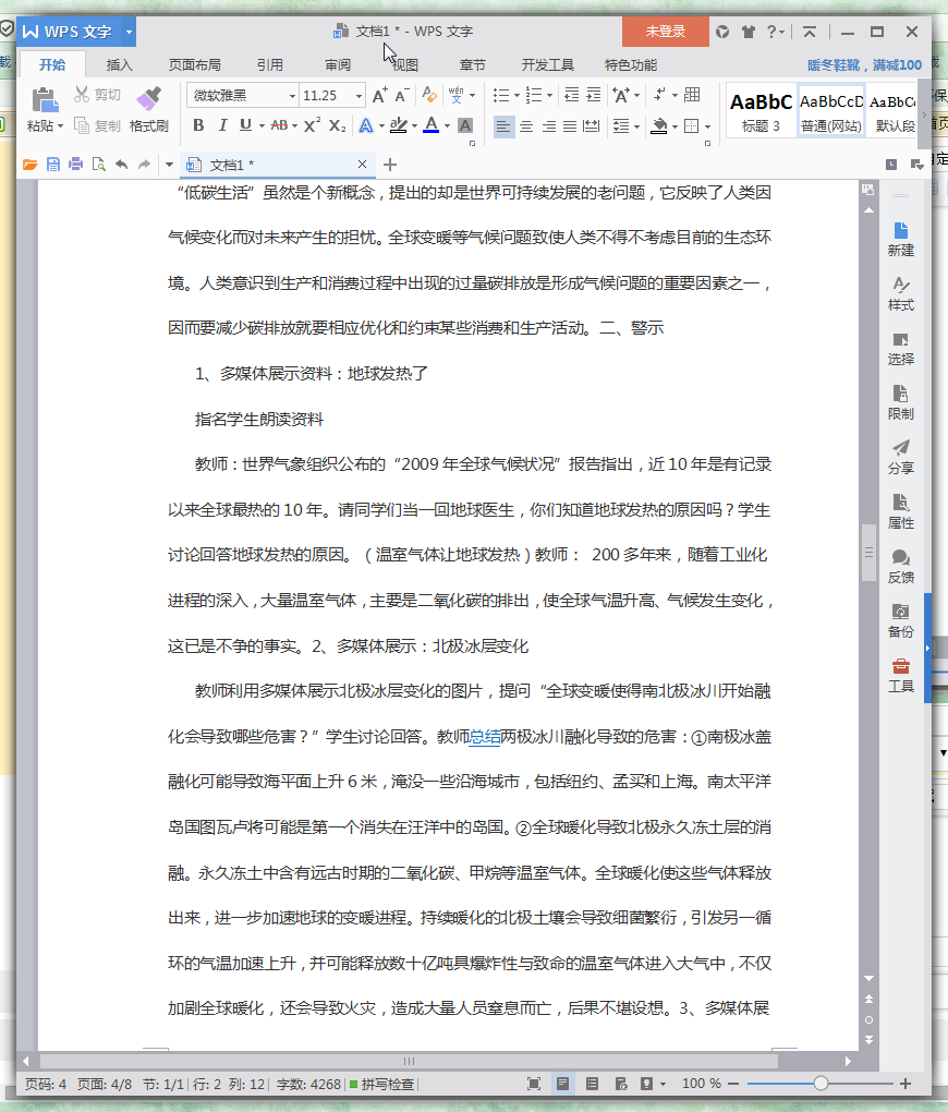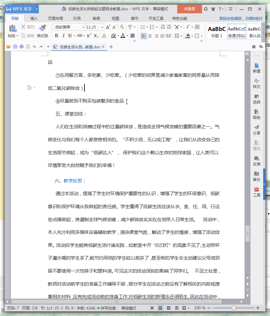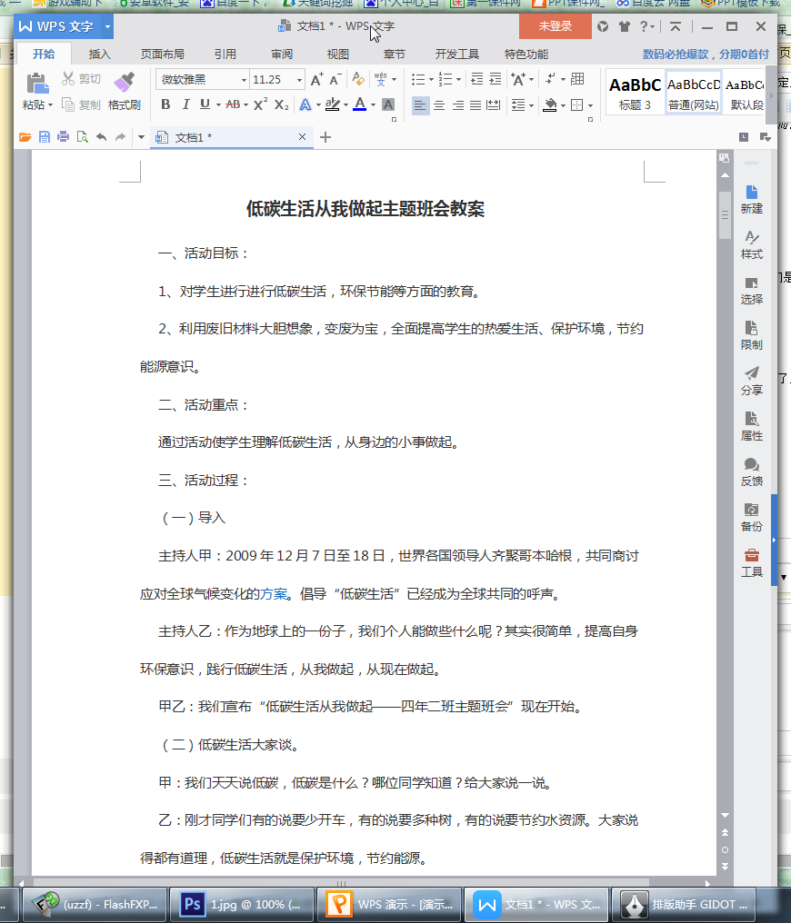 低碳环保主题班会教学教案内容介绍