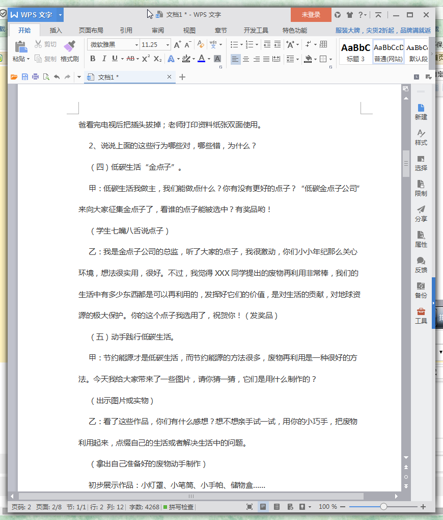 1、对学生进行进行低碳生活,环保节能等方面的教育。
