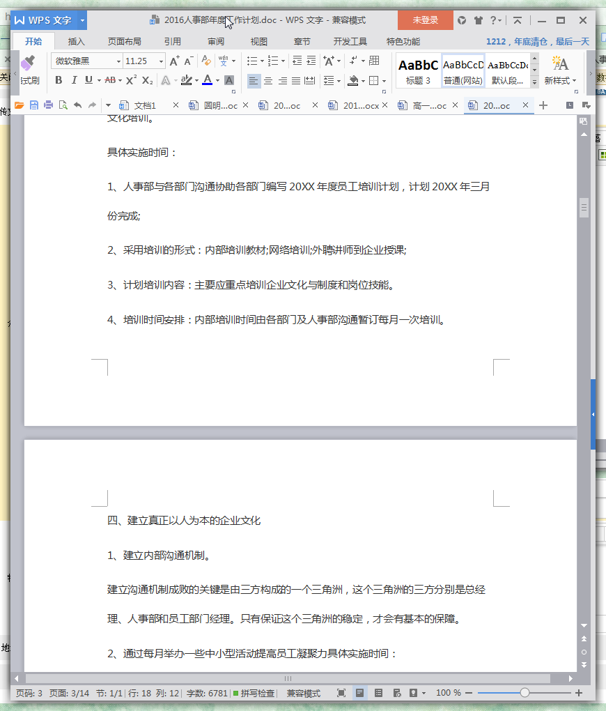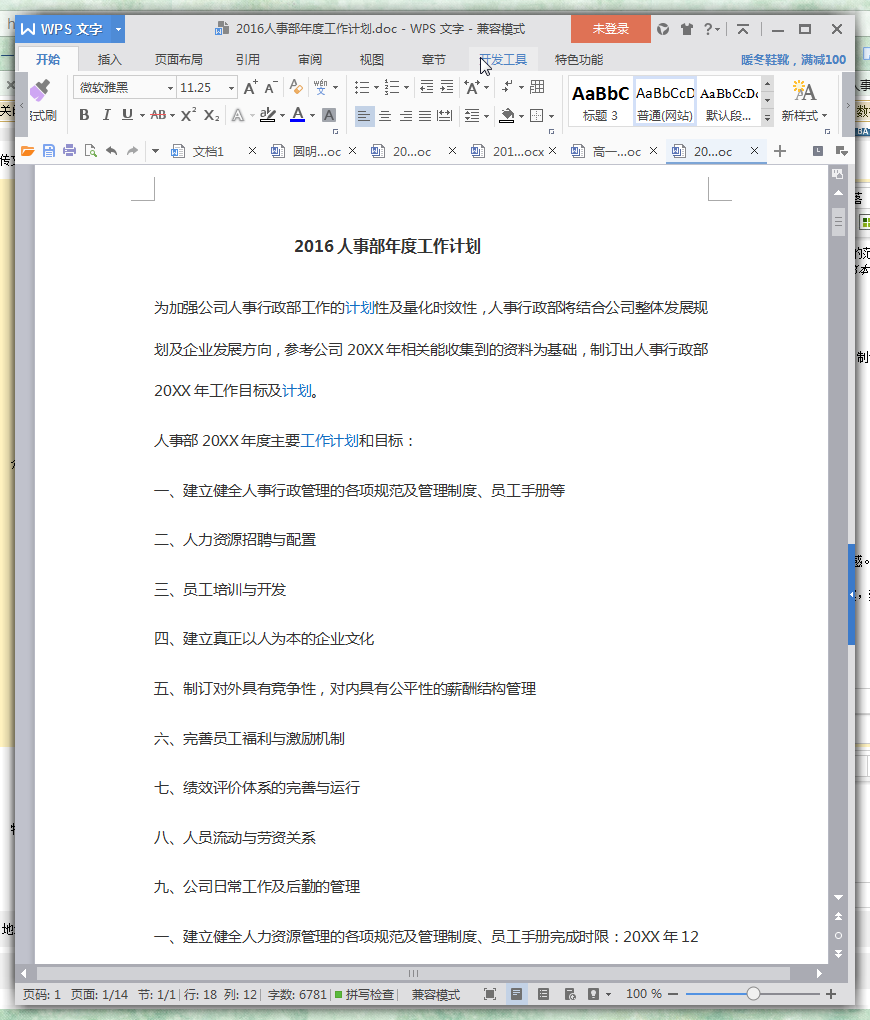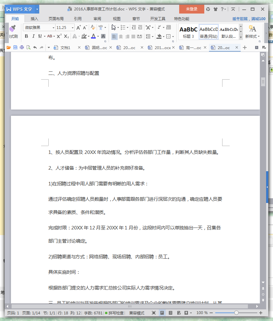 2016年人事部工作计划范文(5篇)预览
