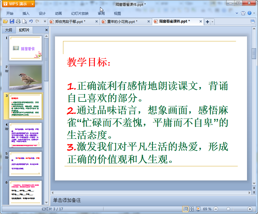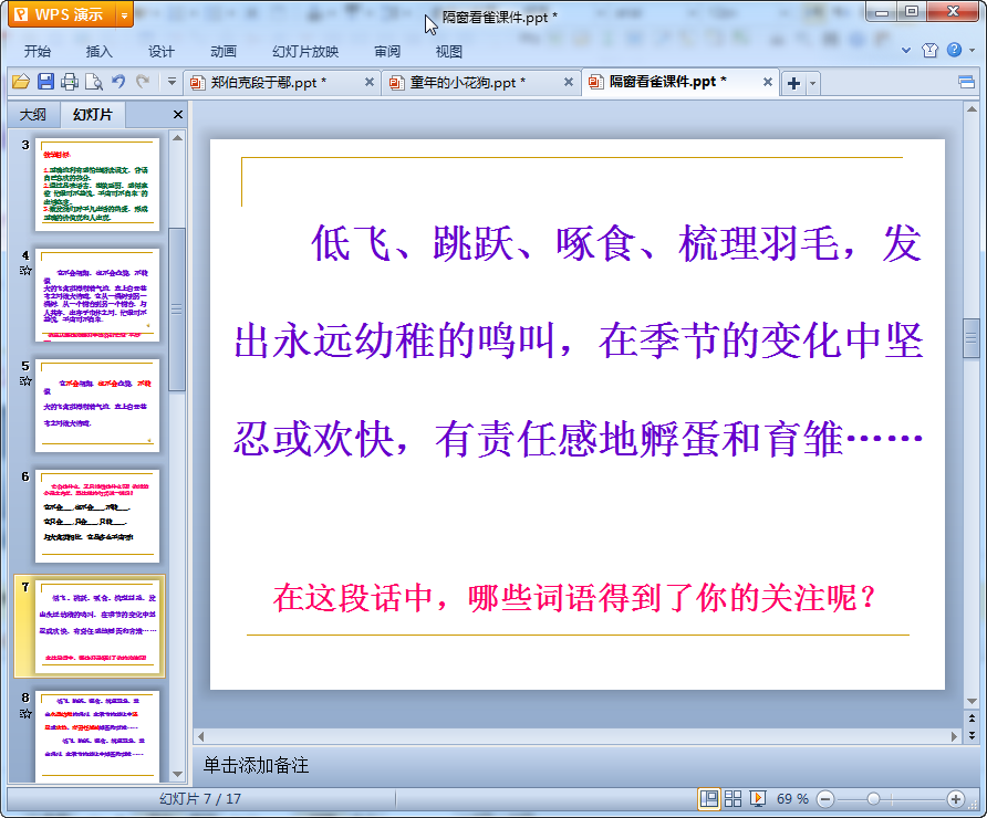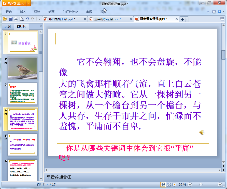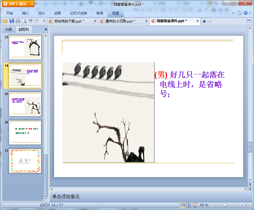 隔窗看雀教学课件预览