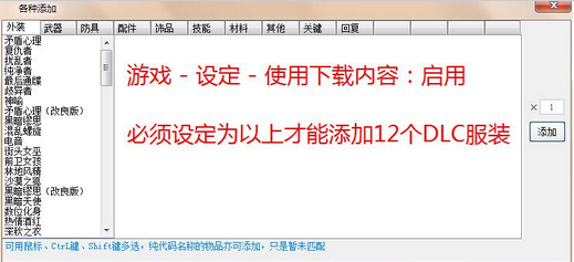 2015/12/13 v1.5.0 新增添加所有装备、材料等,匹配部分名称。修正锁定世界时间变成 06:00的问题