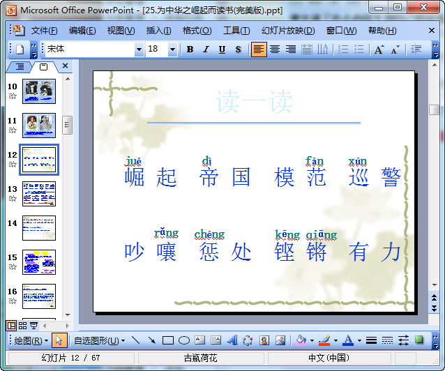 新中国现在是繁荣富强的,而以前是处于落后挨打的地位。今天东坡小编为大家带来的是一份完整的为中华之崛起而读书ppt完美版,总共有67页,告诉你周恩来周总理的读书精神。