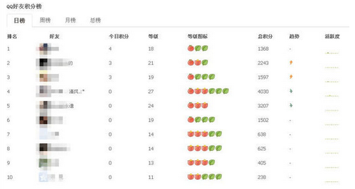 注:日榜、周榜、月榜在积分相同的情况下,则总积分高的用户排名靠前;如总积分也相同,则排名保持一致。