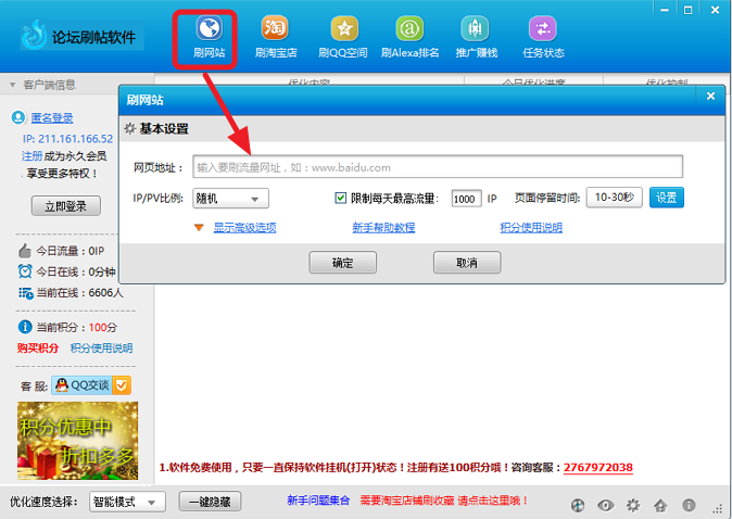 刷论坛流量,刷论坛人气,刷论坛帖子人气,刷论坛帖子浏览量等。软件采用全国各地的真实IP保证你的帖子的人气能够真实有效的提高,节省你的马甲顶帖时间。