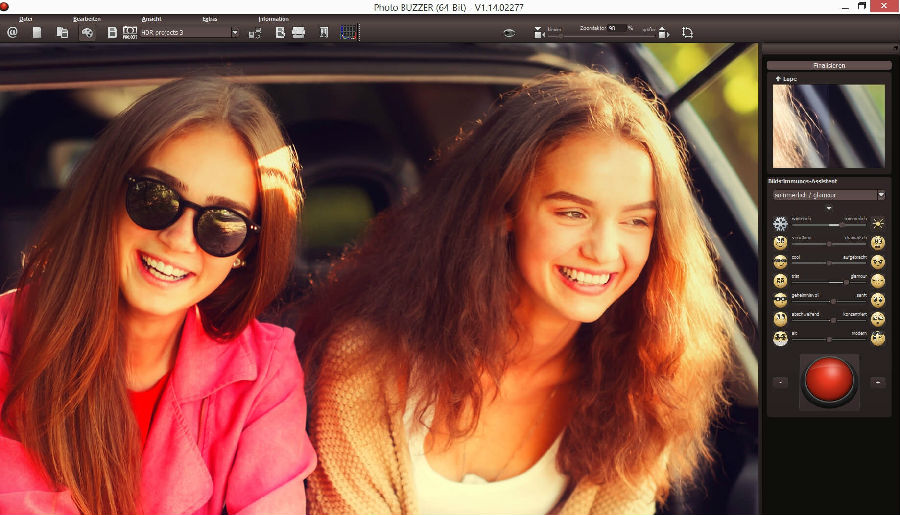 点击红色按钮,照片随即换一款预设效果,风格与主题的变换从未如此简单过。