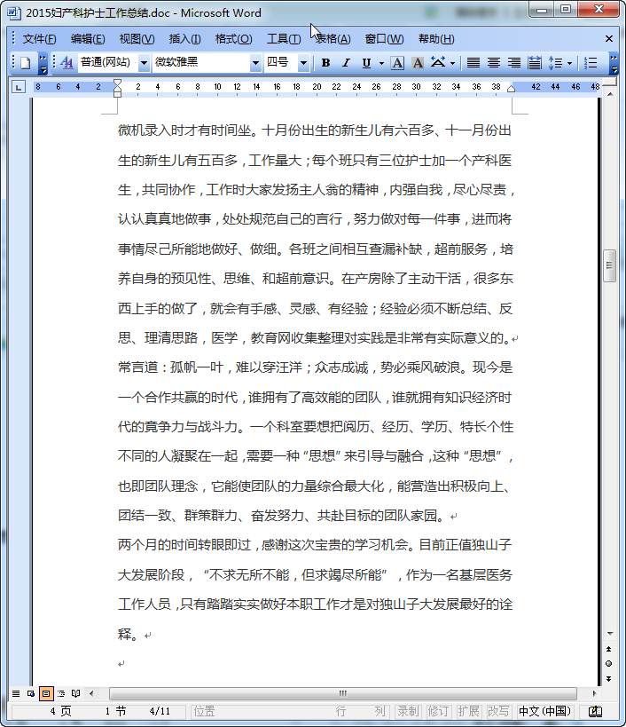 以质量求发展这是大家都明白的道理,认真实施两级网络管理,职责明确,分工明确,每周、每月坚持自查,抽查考核,及时反馈,及时整改。晨会随时进行三基理论提问,特别是护理病历进行及时检查,不规范者及时反馈,使护理病历的质量逐月提高。发现问题及时提出,及时改正,杜绝了问题的再次发生。