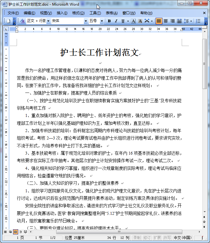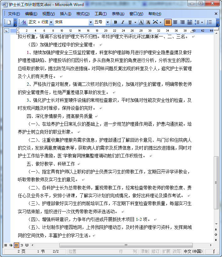加强护理管理,严谨护士长工作计划,提高护士长管理水平