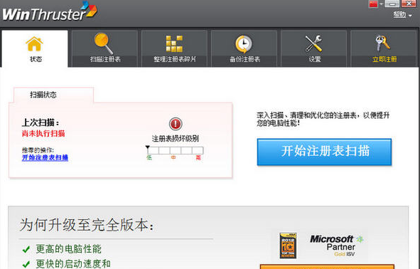 3、用WinThruster(系统优化软件)清理注册表和垃圾文件。