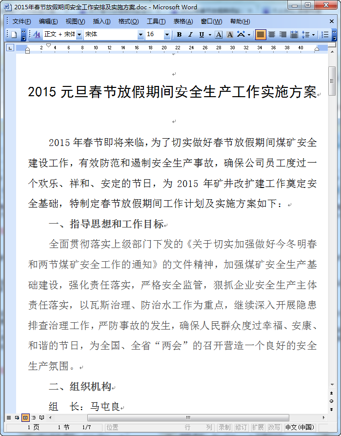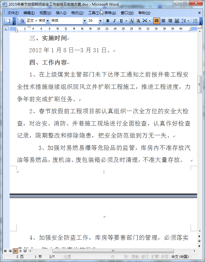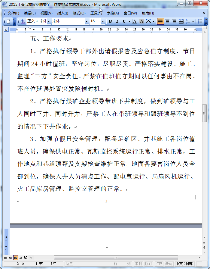 2015年春节即将来临,为了切实做好春节放假期间煤矿安全建设工作,有效防范和遏制安全生产事故,确保公司员工度过一个欢乐、祥和、安定的节日,为2015年矿井改扩建工作奠定安全基础,特制定春节放假期间工作计划及实施方案如下