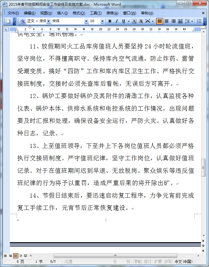 2015春节放假期间安全生产工作实施方案预览