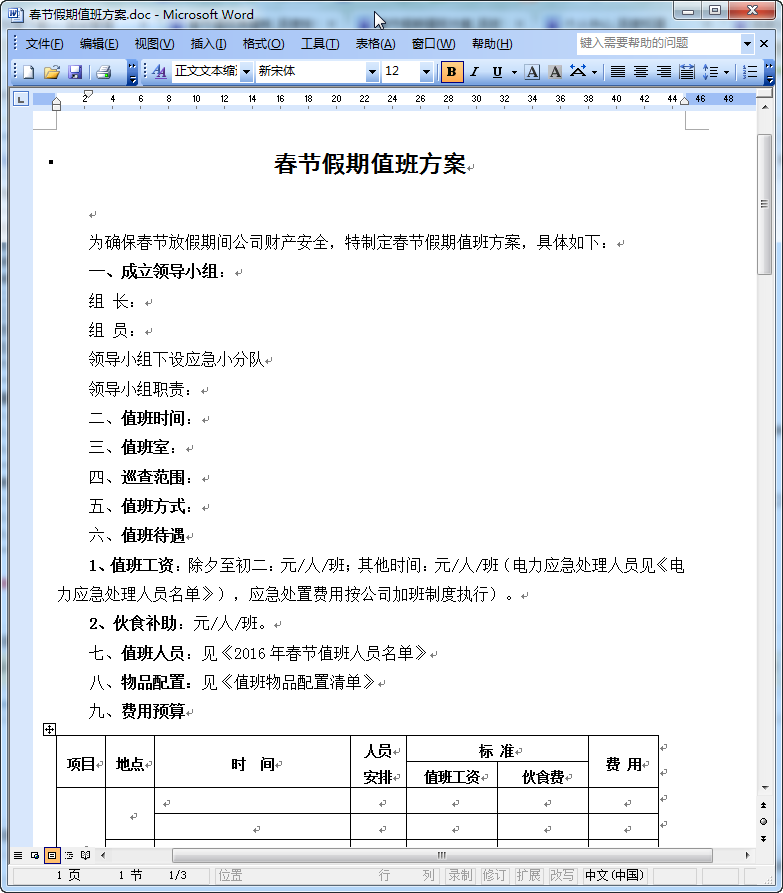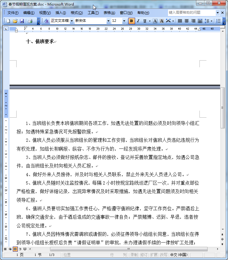 为确保春节放假期间公司财产安全,特制定春节假期值班方案,具体如下:
