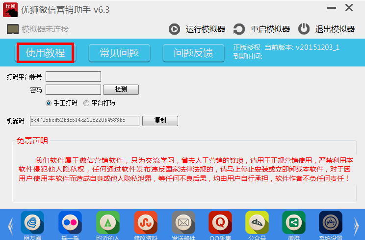 现在大家也都知道微信营销这个行业弄的好就会有很好的机会,想要在这个里面分一杯羹,最好就是备上优狮微信营销助手,这款软件拥有海量的资源,性价比也非常高,适合需要的朋友下载!