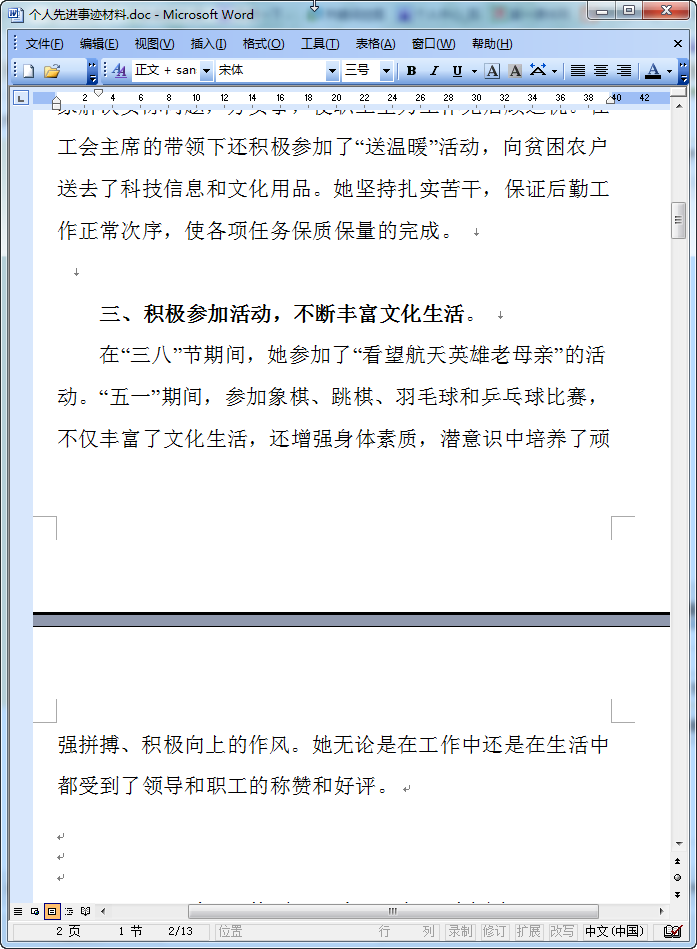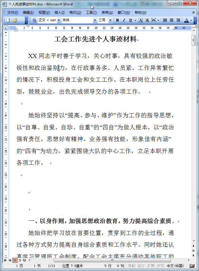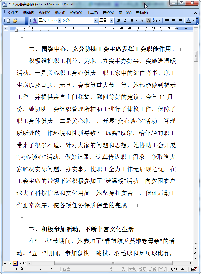 具有较强的触发力和感染力。事迹材料的写作目的是为了引导读者认识先进,学习先进。要达成此目的,首先要吸引读者,感染读者。这就要求事迹材料要具有较强的触发力和感染力。