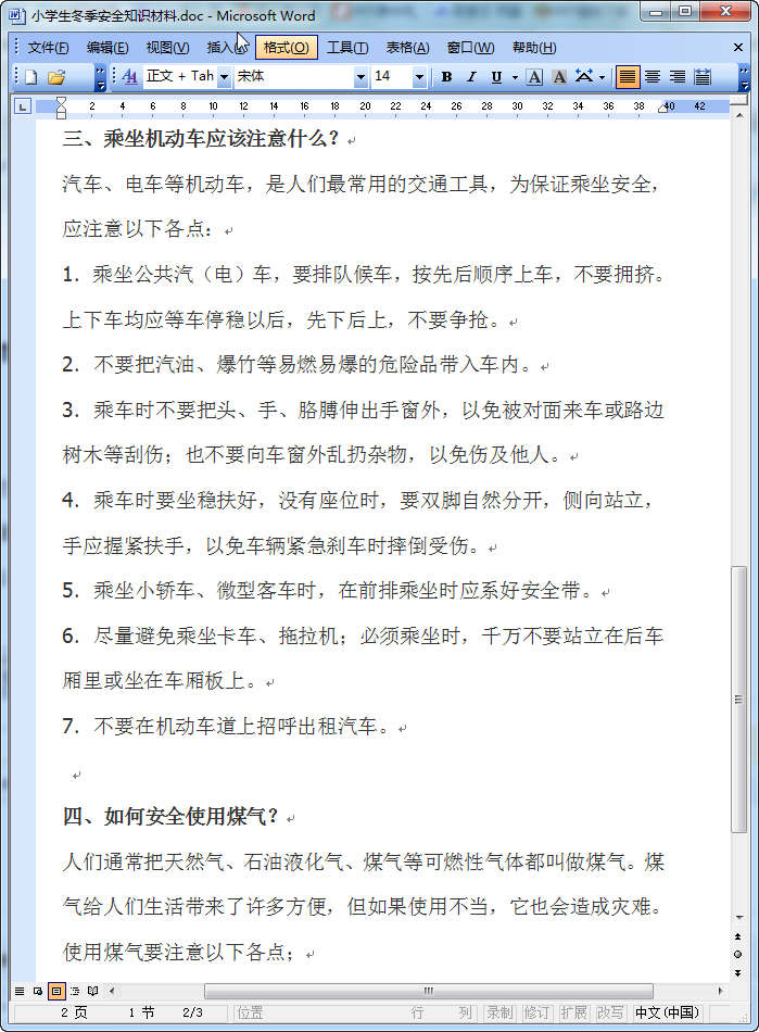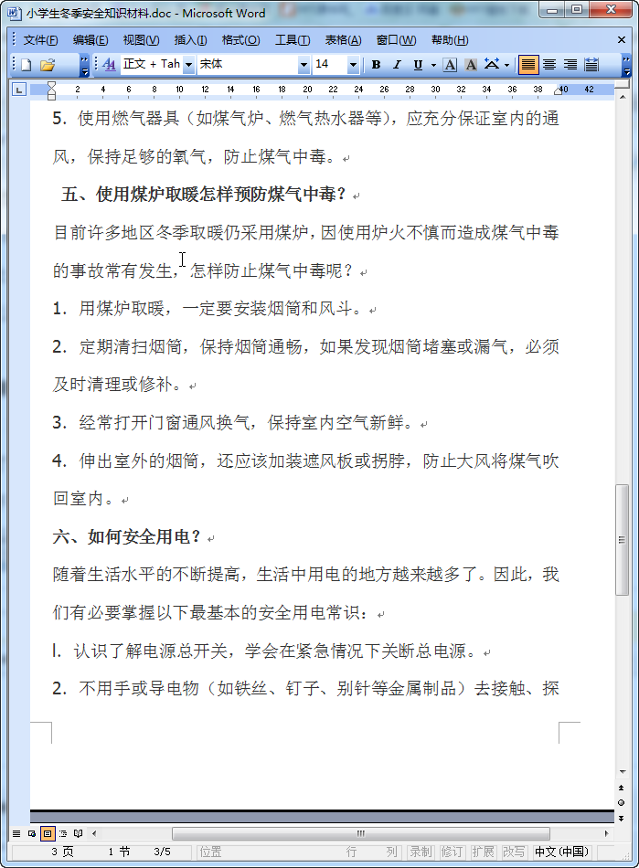 小学生冬季安全知识材料(完整版)内容摘要