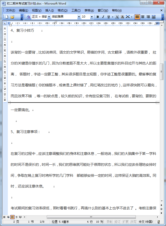 初二期末复习计划预览