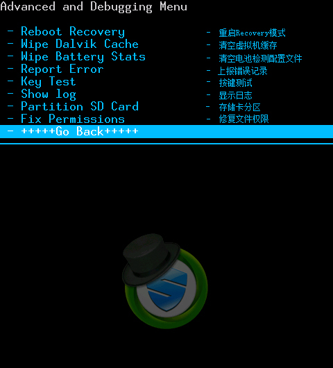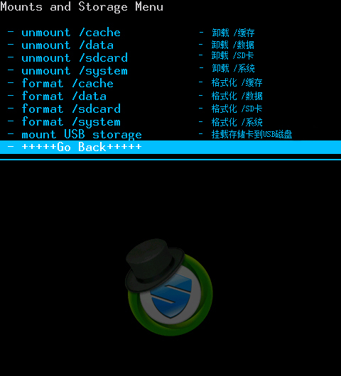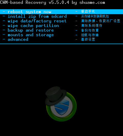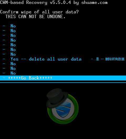 第三项:wipe data/factory reset - 清除数据、恢复出厂设置