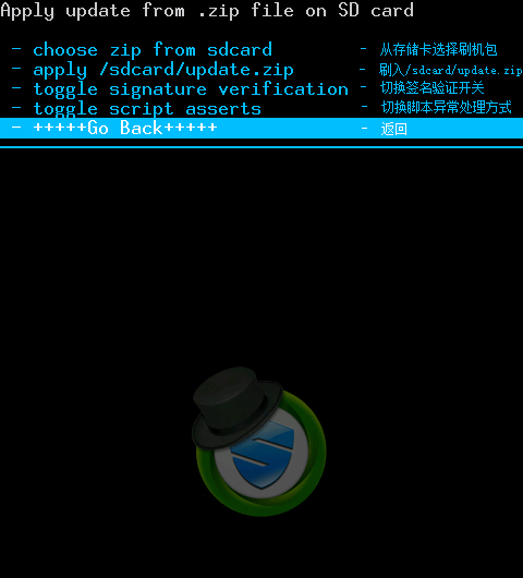 第二项:install zip from sdcard - 从存储卡安装刷机包