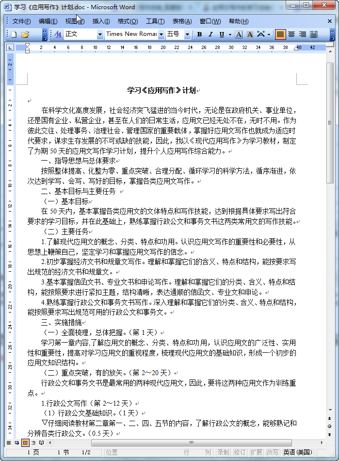应用文写作学习计划(50天)预览