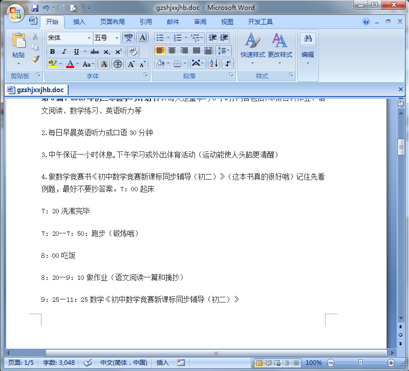 2016年寒假高中学习计划表部分内容展示