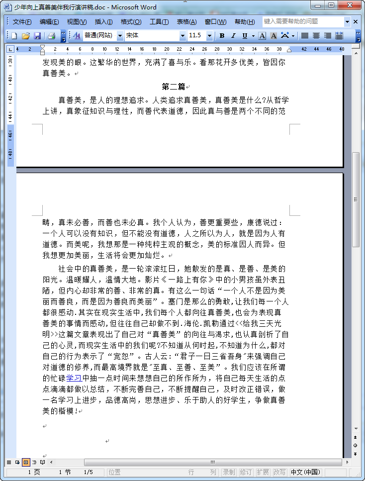 少年向上真善美伴我行演讲稿范文(3篇)预览