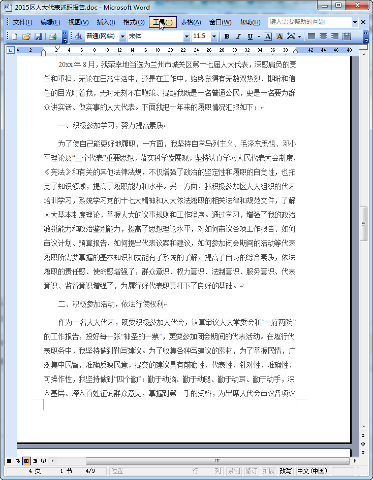 述职报告的外在结构是格式化的,包括标题、称谓、正文和署名四部分。