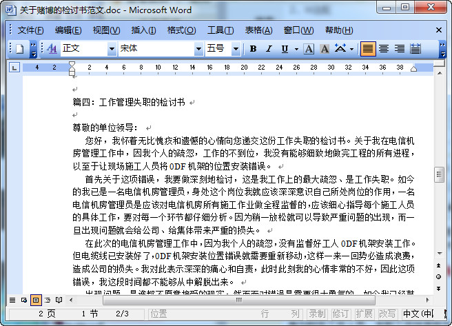 管理失职检讨书范文大全预览