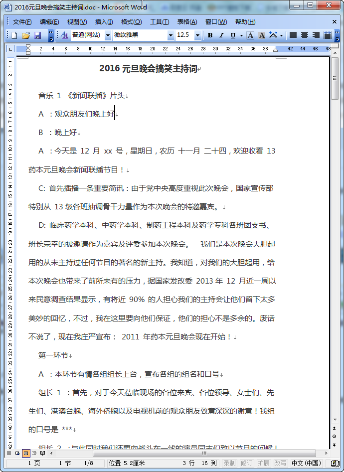 元旦晚会搞笑主持人开场白台词(2篇)预览
