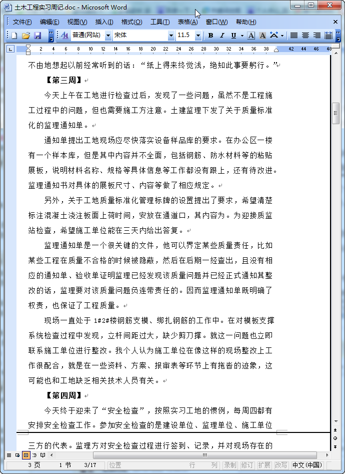 各位广大的朋友们,在实习期同学们是需要书写实习周记之类的文章的,有些同学因为种种原因没有时间的情况下我们我们下载为你们提供了这篇土木工程实习日记20篇(完整版),有兴趣的的可以来我们东坡免费下载收藏!