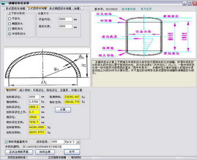 储罐容积任你算是一款计算罐体任意直径和任意液位高度的软件,计算罐体为圆筒体或椭球体,可计算标准的封头也可计算非标的封头,有需要的赶紧来东坡下载使用吧。