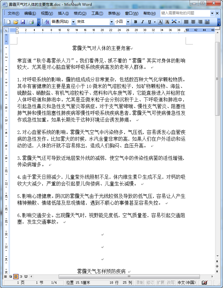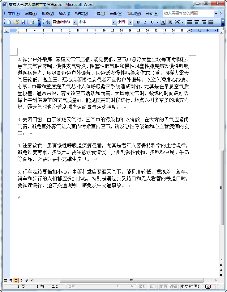 自从2013年来,雾霾天气就开始频频的出现在大家的视野中,近来南京竟然出现了玫红色的雾霾让人深思,这里我们东坡下载给大家带来的这篇雾霾天气对人体的主要危害word,让大家多多的了解一些关于雾霾天气对人体的危害及预防措施!