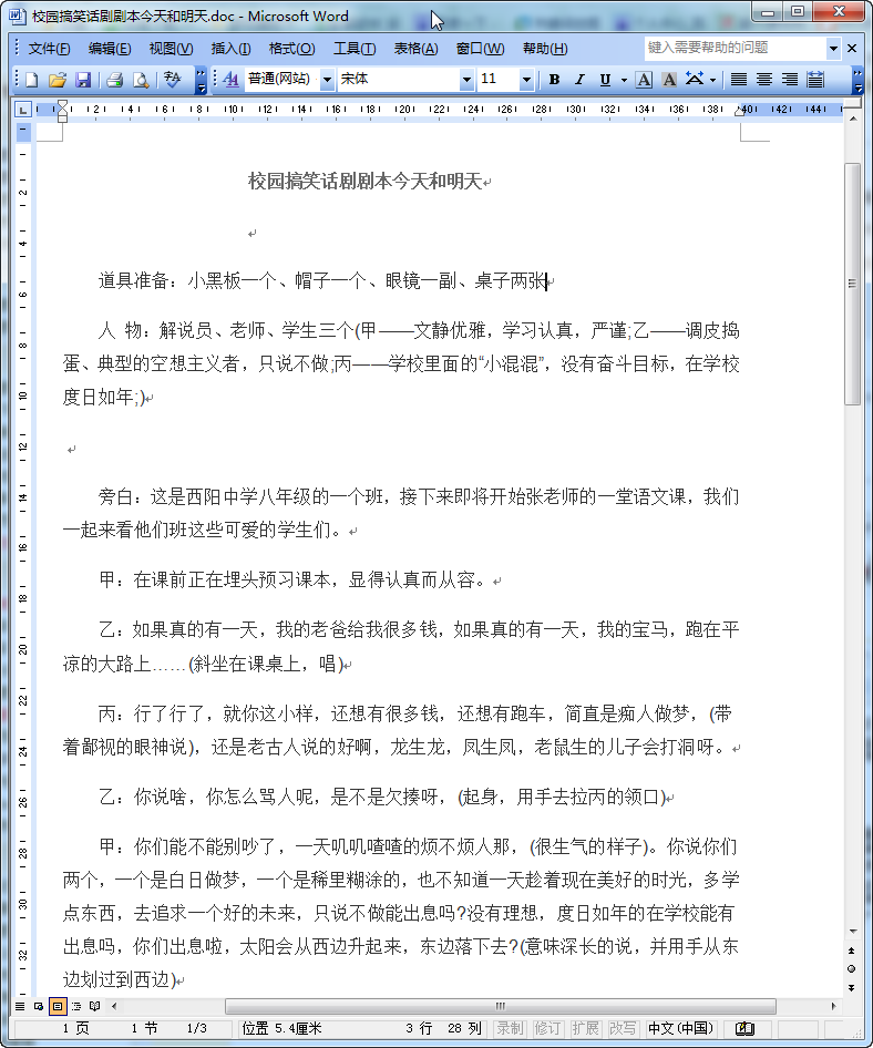 5人校园搞笑话剧剧本内容预览