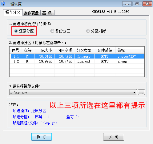 只要不是当前系统分区,在Windows中和PE中都可备份/还原,