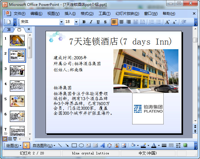七天连锁酒店介绍ppt模板预览