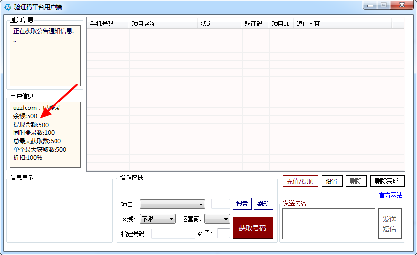 1. 用户状态信息:USER&余额&最大登录数&最大获取号码数&客户端最大获取号码数&折扣