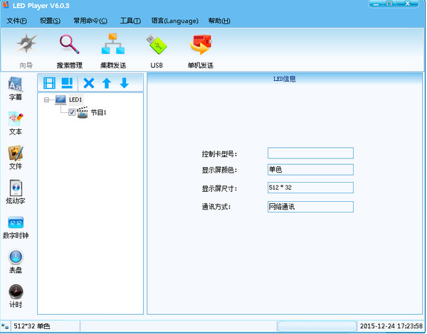 灵信LED控制卡软件(LED Player),可以编辑的节目包括字幕、文本、炫动字、数字时钟及表盘,屏幕计时等,可定时调节或手动调节屏幕亮度,有需要的赶紧来东坡下载使用吧。