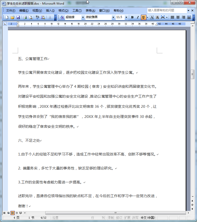 学生处处长述职报告内容介绍