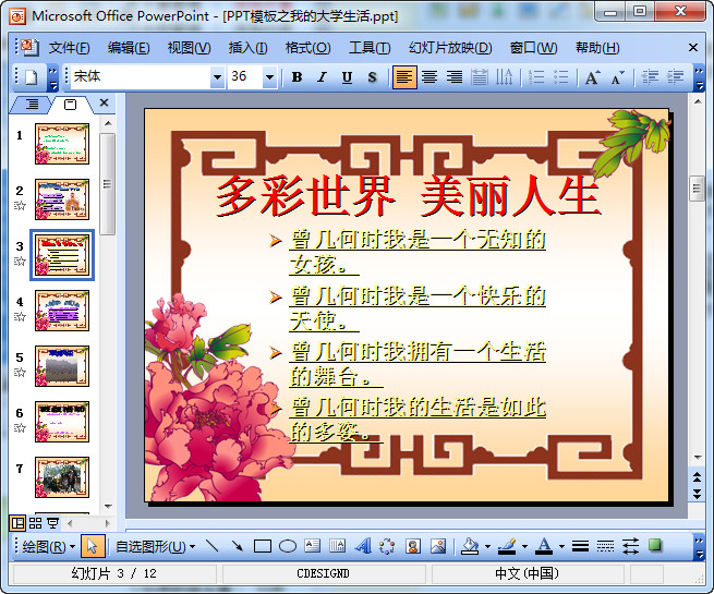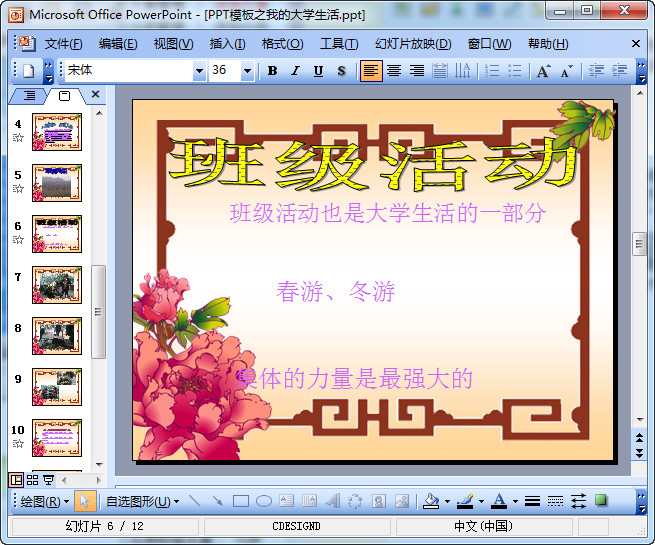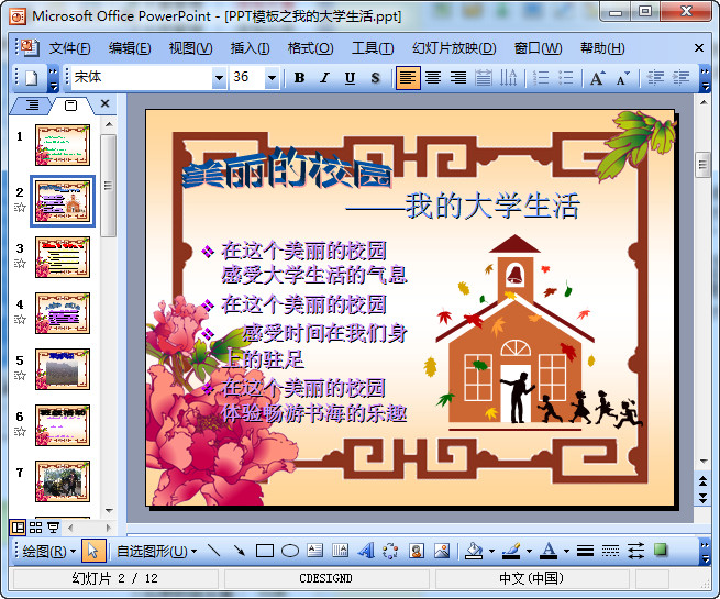 大学生活是美妙的,今天东坡小编为大家带来一份完整的ppt模板之我的大学生活,总共有12页,写出了大学的军训,班级、社团活动等等方面,描绘出了一个丰富多彩的大学生活!