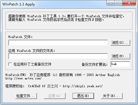 这是是WPApply.exe,手动选择补丁文件,然后直接应用,这个也比价方便,不过不能制作,只能应用补丁。