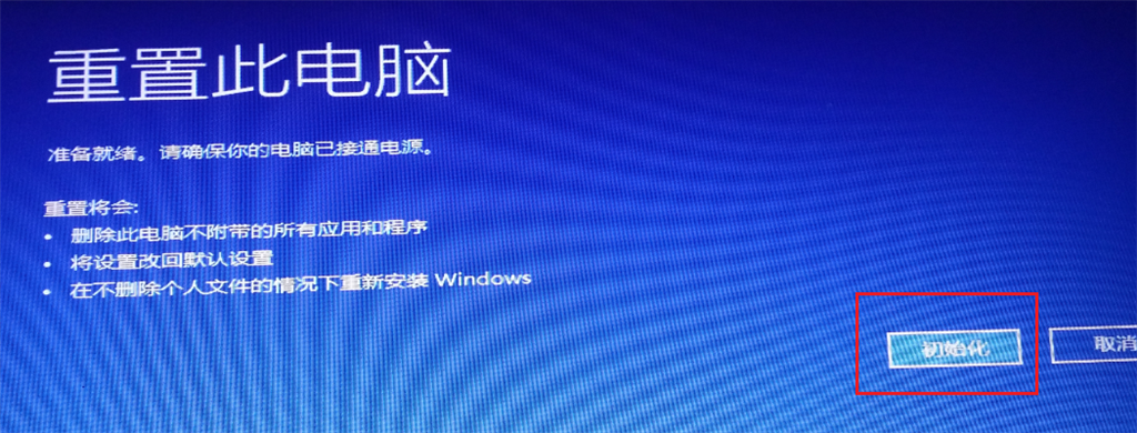 4. 电脑自动重启,开始“重置操作”,这里可能需要大约40~50分钟,请您耐心等待,特别是到8 %的时候,进程可能会比较慢。