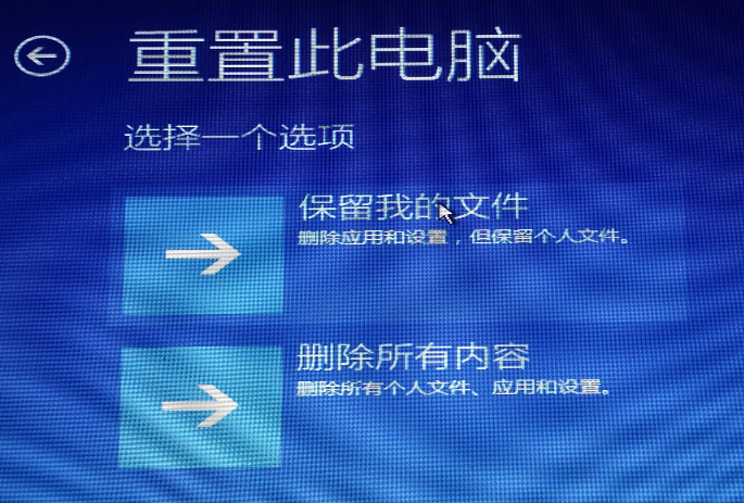 2.点击重置此电脑,您会看到如下界面,根据您自身需要,选择“是否保留已安装的软件,应用和资料”