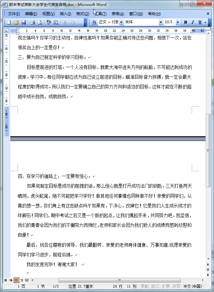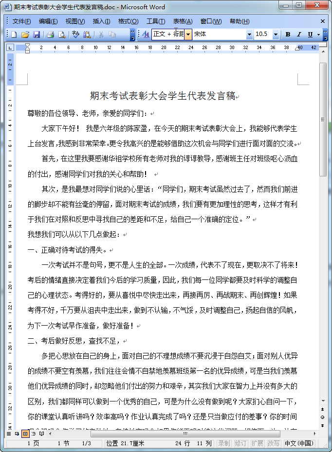优秀学生代表发言稿内容预览