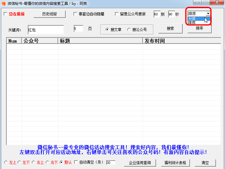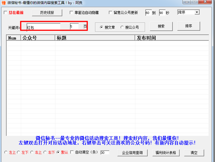 微信秘书工具软件是目前来说非常靠谱的一款微信活动内容搜索工具。大家可以通过它输入关键字,就能够最快的获取到最新的活动资讯,从而参与相关的活动!