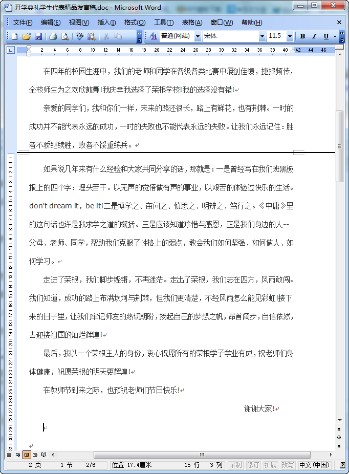 这是我们东坡下载精细整理出来的一篇开学典礼学生代表精品发言稿,内容制作十分精美,对该发言稿感兴趣的同学可以来我们东坡进行免费的下载使用!