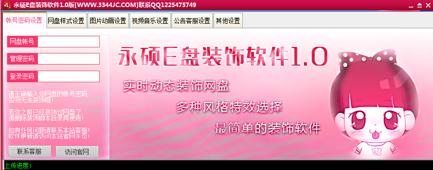 1、只需要设置好你永硕网盘的帐号/登录密码/管理密码,就可以进行装饰