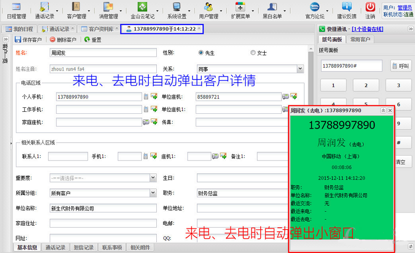 1、支持电话高清录音及电脑拨号,100G硬盘空间可以连续录10年。