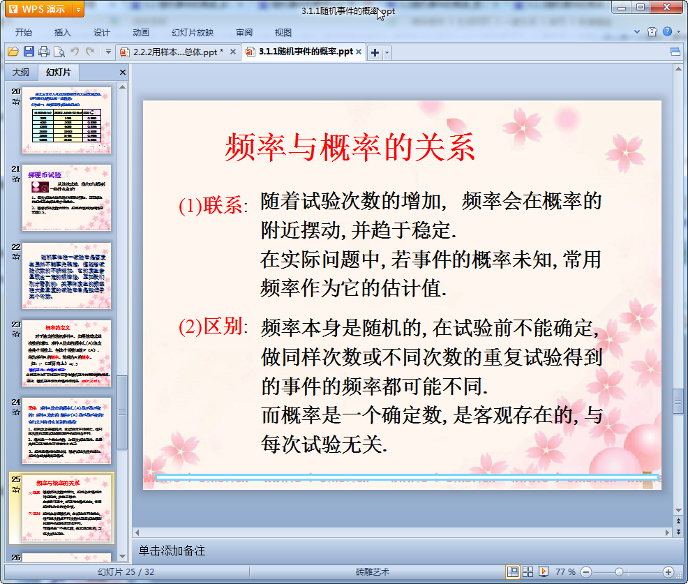 这是我们东坡下载整理的一篇随机事件的概率教学课件,课件制作精美全篇共有32页,有需要该课件的老师们可以来我们东坡看看,我们为大家提供了免费的下载地址!