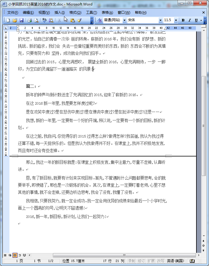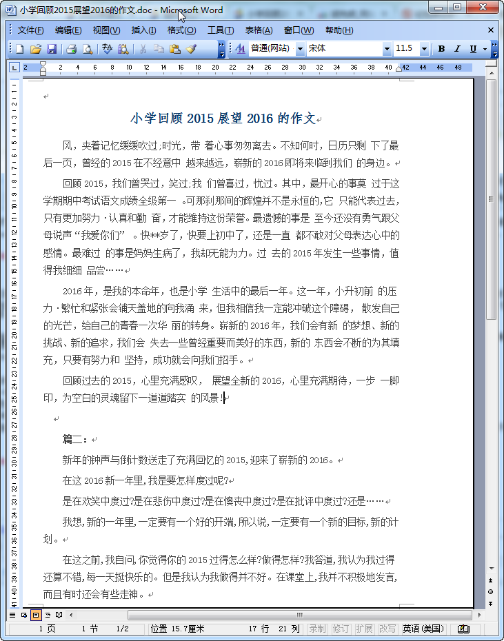 小学回顾2015展望2016作文(2篇)内容介绍