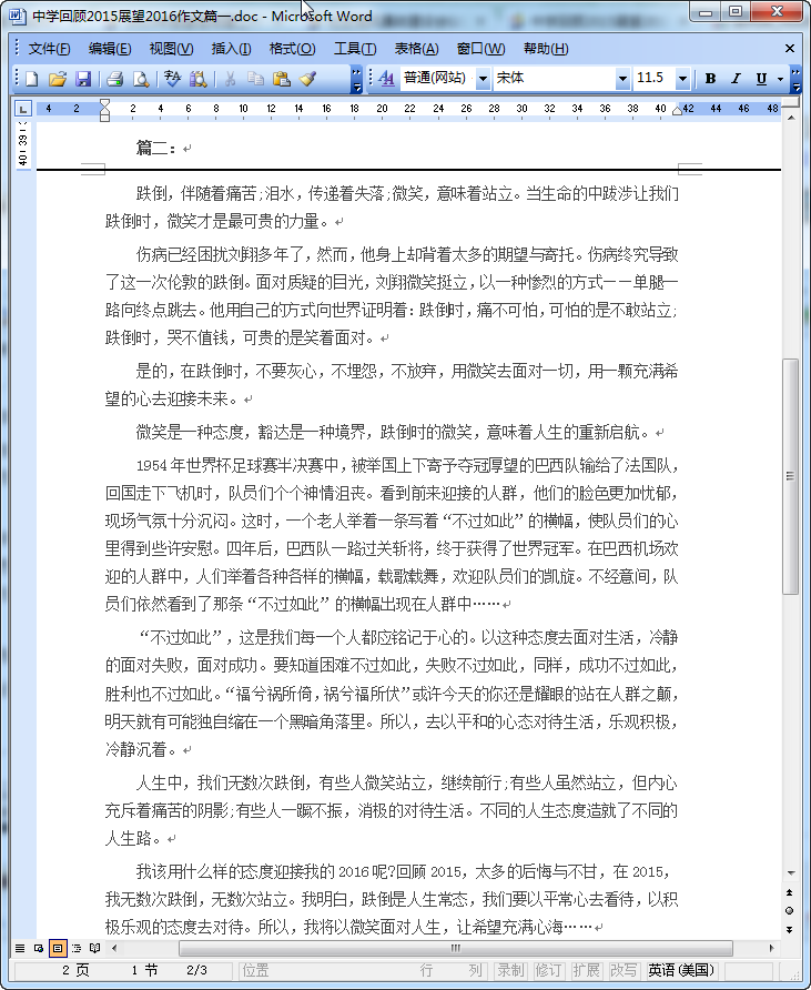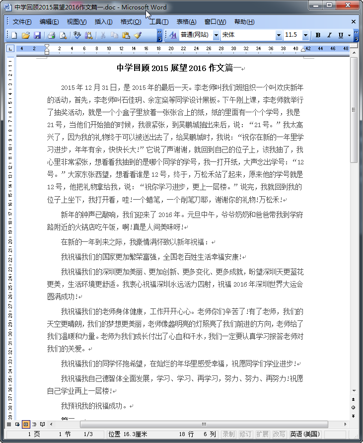 初中回顾2015展望2016作文范文预览