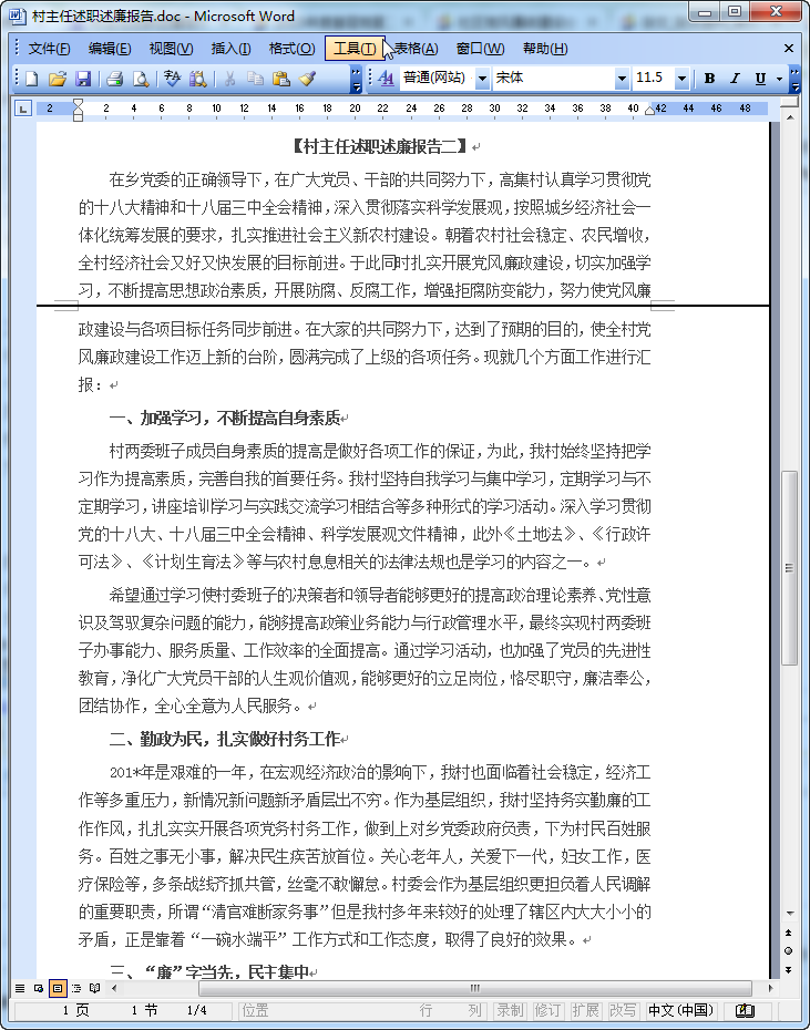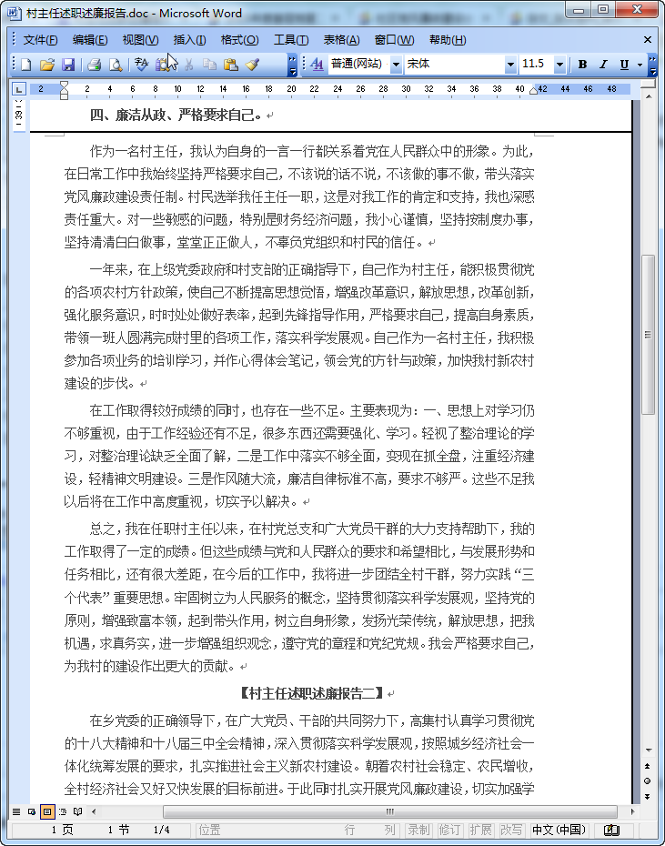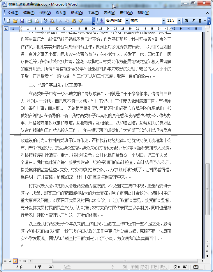 作为武宜村民委员会主任,我在镇党委和村党总支的正确领导下,在全村干部党员的共同努力下,紧紧围绕建设社会主义新农村工作为重点,尽职尽责,与时俱进,开拓进取,使我村的三个文明建设和各项事业按照年初预定的目标全部完成。