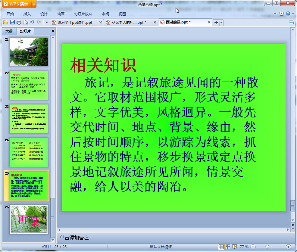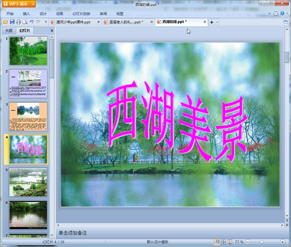 这是我们东坡为大家整理的一篇四年级语文西湖的绿ppt,课件制作精美全篇共育26也,需要该课文课件的老师们可以来我们这里看看,喜欢可以来我们这里免费的下载使用!